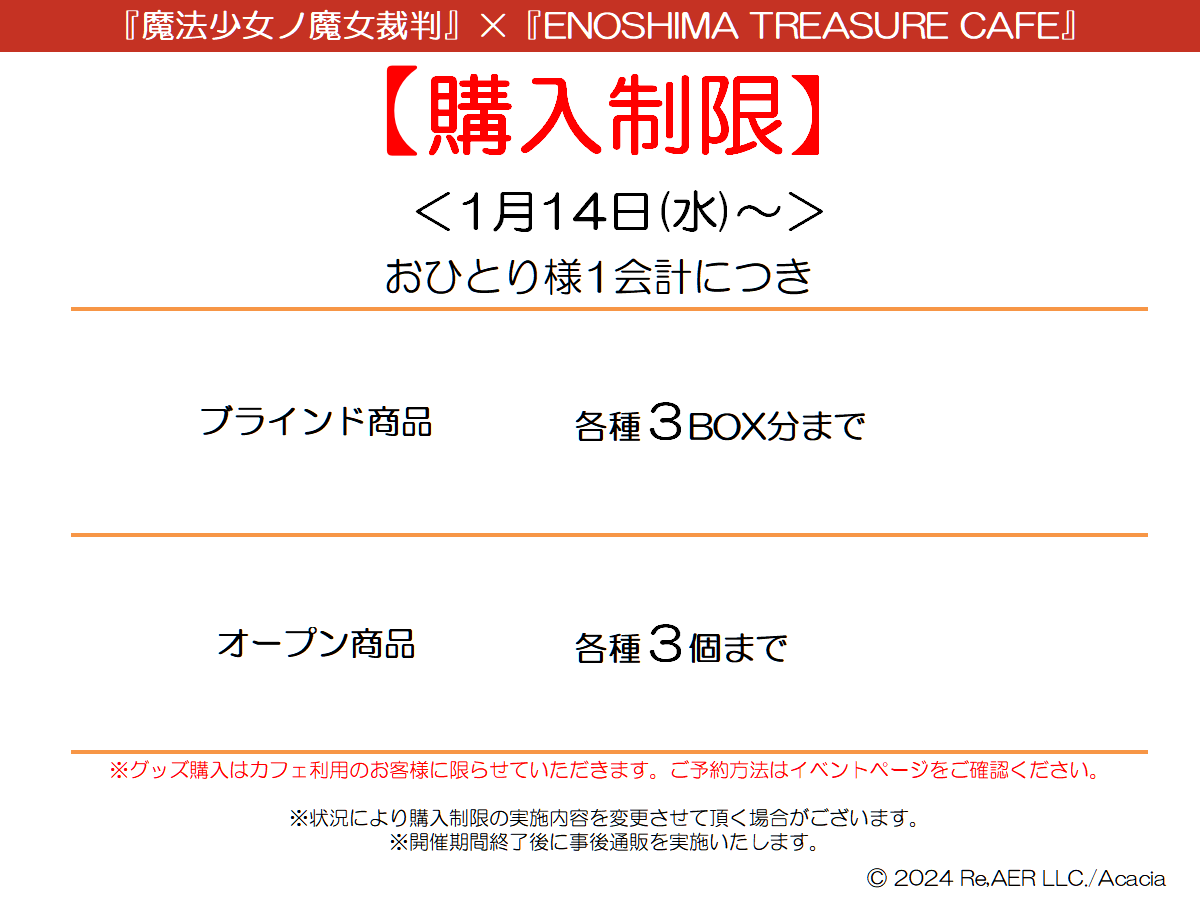 『魔法少女ノ魔女裁判×ENOSHIMA TREASURE CAFE』コラボグッズは開催期間終了後に事後通販をいたします。