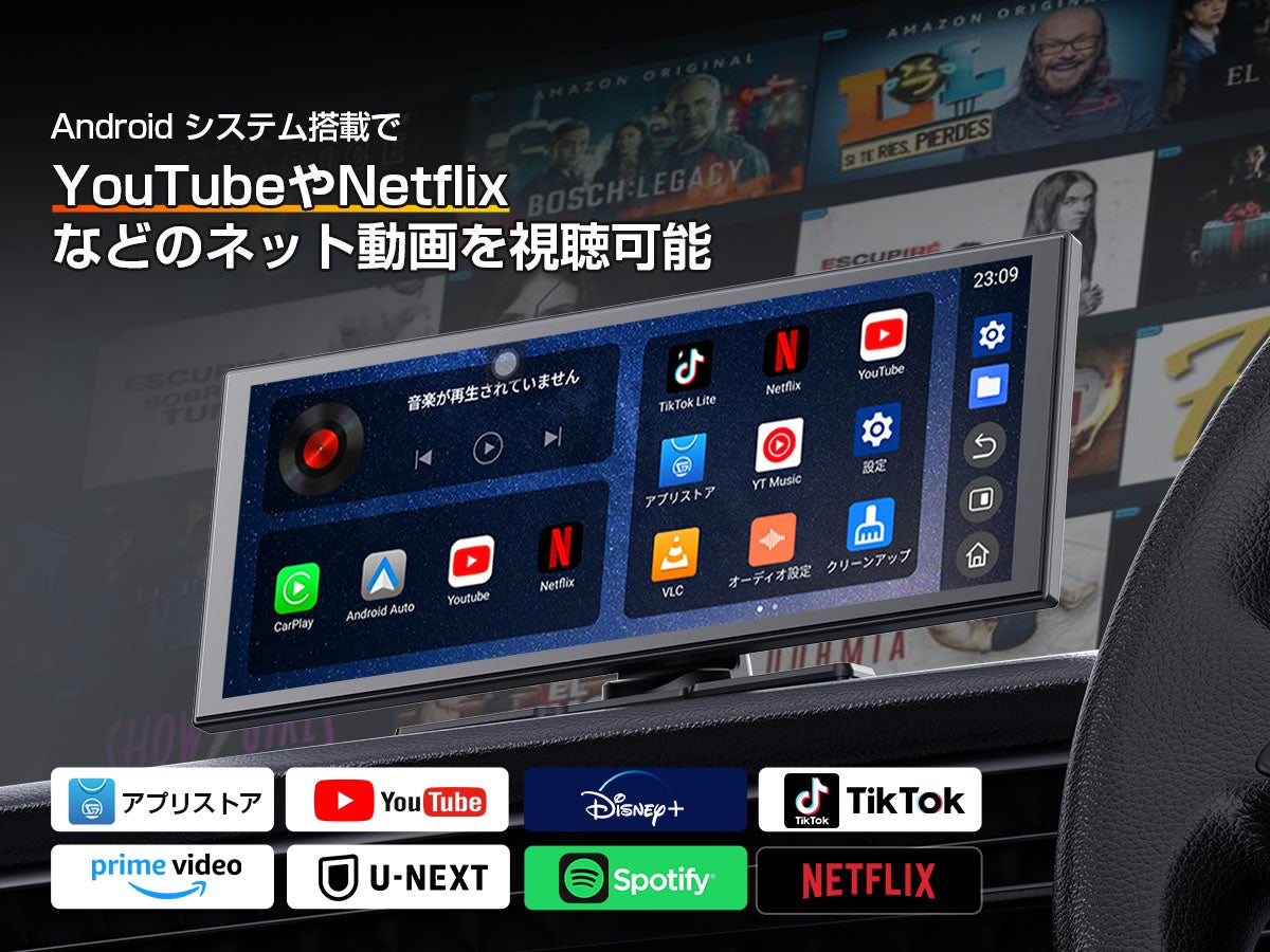 スマホを接続したり投影したりする必要がなく、端末単体でストリーミング視聴が完結。長距離ドライブや待ち時間でも、安定した車内エンタメ環境を手軽に楽しめます。