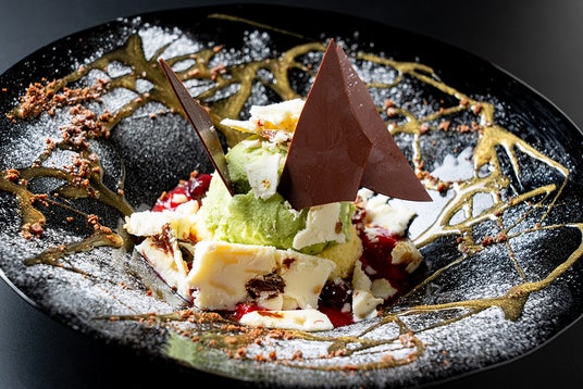 爽やかなベリーソースと濃厚なジェラートが織りなす、食後の贅沢な一口