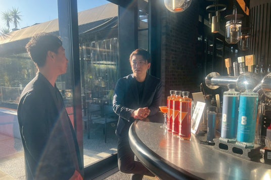 左から 発案者 Antonic:武田光太と、株式会社HUGE コーポレートバーテンダー・蒸留家:深水稔大氏
