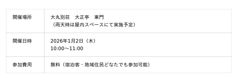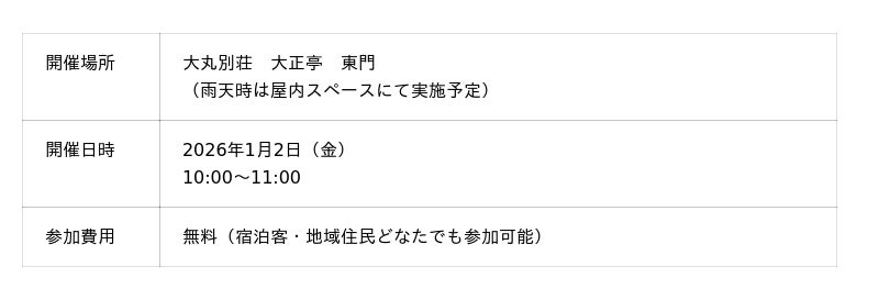 株式会社大丸別荘(所在地:福岡県筑紫野市湯町1丁目20-1)は、2026年1月2日(金)に「新春もちつき」を開催いたします。