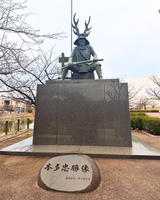 桑名城の三の丸跡に造られた芝生広場入口の本多忠勝像