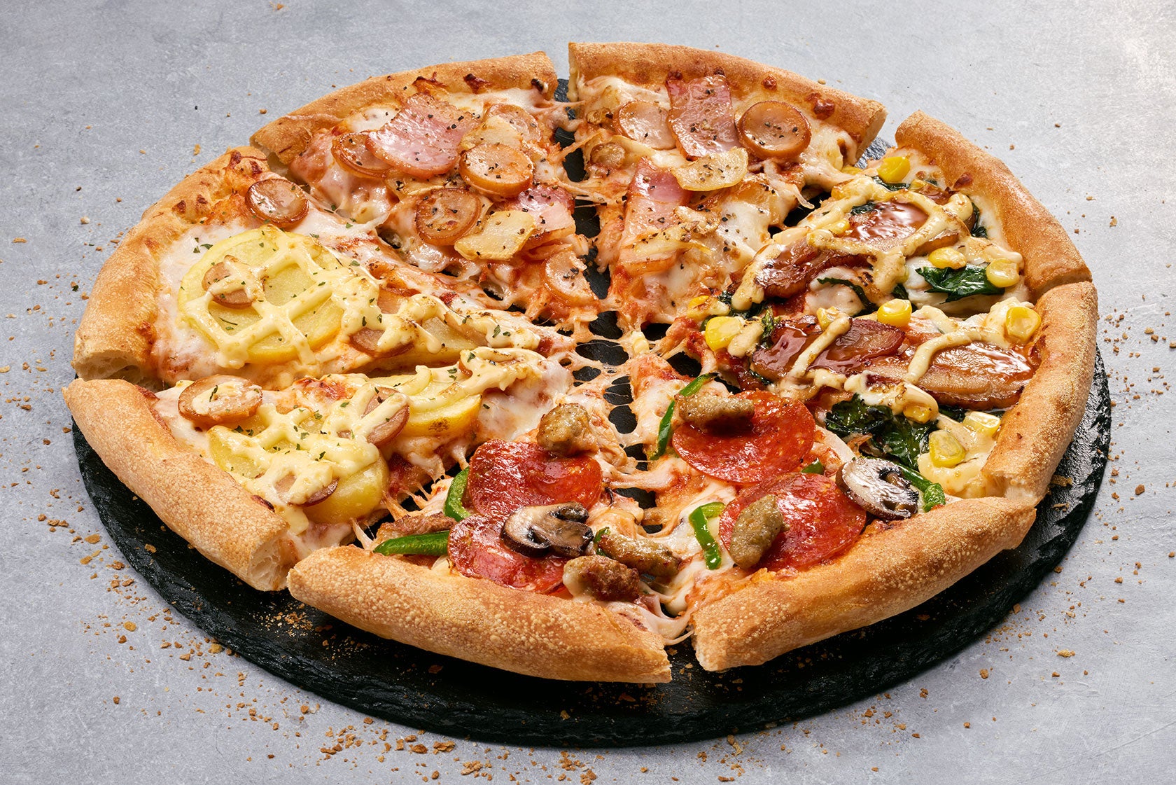 4種類の味が1枚でお楽しみいただける「クワトロ・ピザ」は、複数の味を少しずつ楽しみたいという日本人の好みに合わせて、ドミノ・ピザが1997年に開発した商品です。様々な味が楽しめるおせちのように、お正月にもぴったりの一枚です。