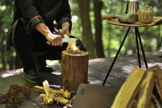 滞在の始まりは、森での「焚き火熾し」からスタート