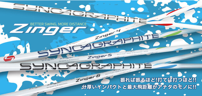 振れば振るほど、打てば打つほどスイングを改善に導き、厚い当たりで最大飛距離を生み出す必携シャフト「Zinger」は、シンカグラファイト製シャフトの特長を誰もが体感出来るマルチフレックスシャフトです。