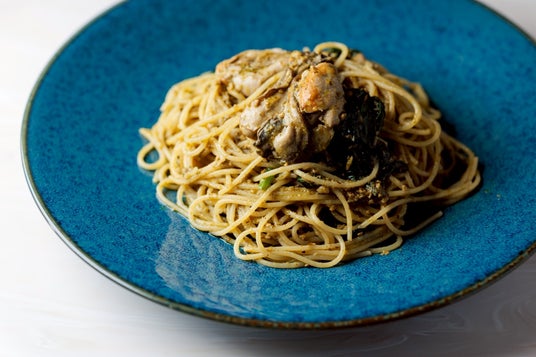 牡蠣とほうれん草のジェノベーゼ 仁淀川山椒のアクセント