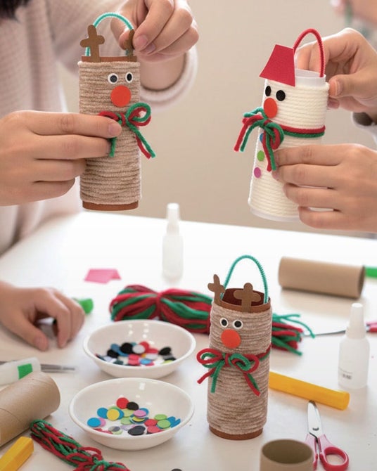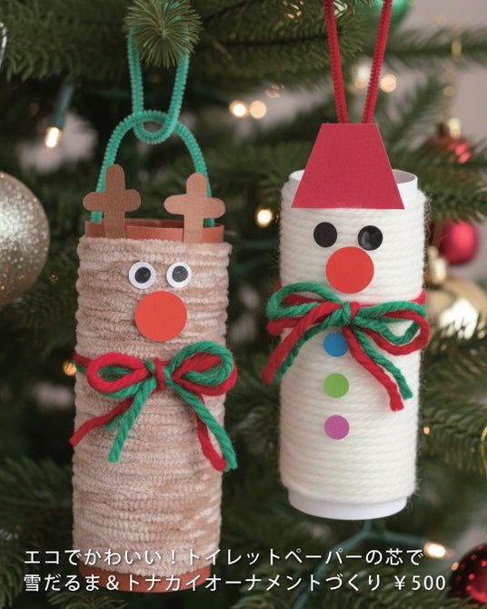 トイレットペーパーの芯を使った、エコでかわいいクリスマスオーナメント制作体験。