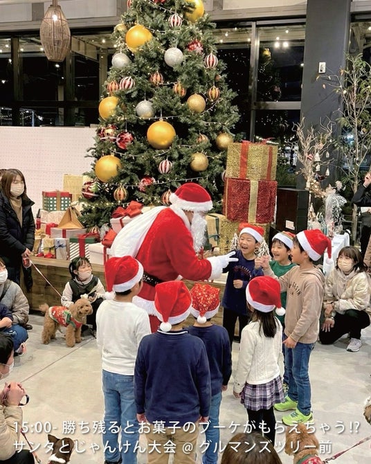 サンタクロースと一緒に楽しむ、毎年人気のじゃんけん大会を開催。