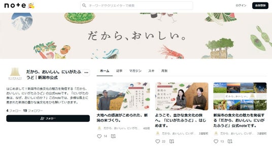 このたび、メディアプラットフォーム「note」の公式アカウントを開設し、地理的・歴史的な面など、豊かな食の背景にある、多様な風土に恵まれた本市の食文化の魅力について情報を発信していきます。