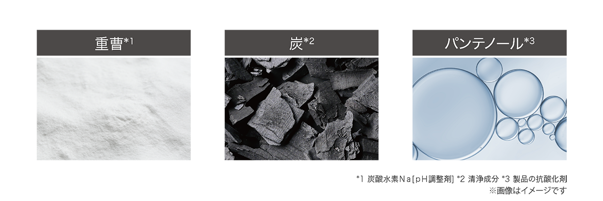 重曹*1 、炭*2 、パンテノール*3配合。しつこい毛穴の角栓をオフしてすっきりつるつる肌へ洗い上げます。