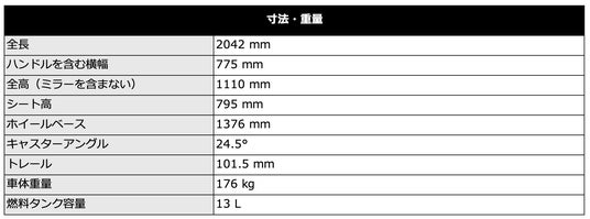 アルミニウムシルバーは燃料タンク、シートカウル、ナンバーボード、ホイールに配された レーシングレッド のグラフィックがアクセントとなり、洗練されたスポーティーさを演出。レーシングイエロー は、鮮やかなイエローのタンクとシートカウルを主役に、ファントムブラック のエレメントと、ナンバーボードおよびホイールに施されたレーシングイエローのハイライトが力強いコントラストを描きます。そして、よりダークでアグレッシブな印象を求めるライダーにはファントムブラックをオススメ。タンク、カウル、ナンバーボード、ホイールにダークシルバー・バニラホワイト・パールメタリックホワイト のアクセントを組み合わせ、精悍な存在感を放ちます。