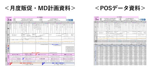 気象MDカレンダーは、月度販促・MD計画資料とPOSデータ資料の二部構成にてご提供し、お客様の目的・課題に合わせて活用頂けます。月度販促・MD計画資料はA4サイズ横型、POSデータ資料はA3縦型のExcelテンプレート形式で提供し、現場や会議ですぐに活用できる設計となっています。