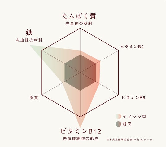 猪肉は、豚肉と比較して鉄やたんぱく質、ビタミンB群などを含む食材として、広く知られています(図1)FeMEETSでは、こうした一般的な特性にとどまらず、部位ごとの栄養価に着目した検証を実施しました。