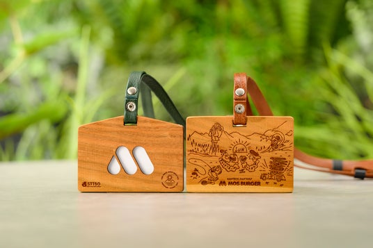 未利用間伐材の桜の木から作られたIDケースです。ストラップには、森林で害獣駆除された鹿の皮を使用しました。モスバーガーのロゴをデザインしたものと、「お手本は自然、選ぶのはあなた」をコンセプトにしたモス公式オンラインショップ「Life with MOS」をデザインしたものの2種類からお選びいただけます。なお、ロゴをデザインしたものは、ウッドデザイン賞2024を受賞しました。