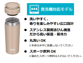 また、当社が実施した調査では、ケータイタンブラーの購入者は「洗いやすさ」や、飲むときに握りやすい「形状」を重要視していることが分かりました。持ち運びやすいキャリーシリーズは、オフィス内での移動でも便利と評価されていますが、『サーモス 真空断熱ケータイタンブラー(JOVシリーズ)』は、持ち運びやすさだけではなく、洗いやすさとシンプルな形状にもこだわったケータイタンブラーです。
