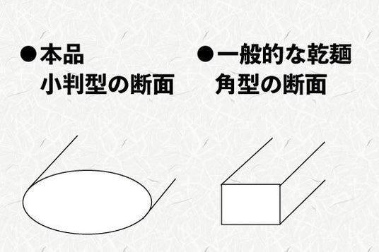 麺の断面を小判型に仕上げることによってなめらかな口当たりともっちりとした食感が楽しめます。