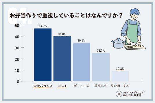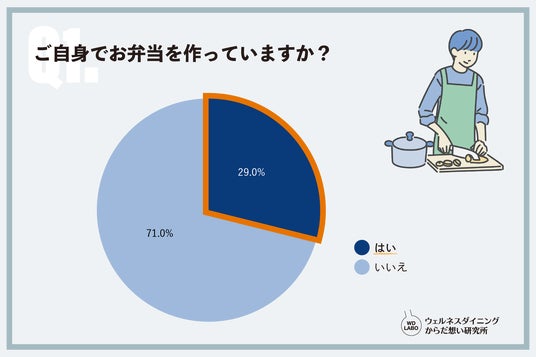 ウェルネスダイニング株式会社(本社:東京都墨田区、代表取締役:中本哲宏)は、全国の成人男性300名を対象に「弁当づくりの実態調査」を実施しました。