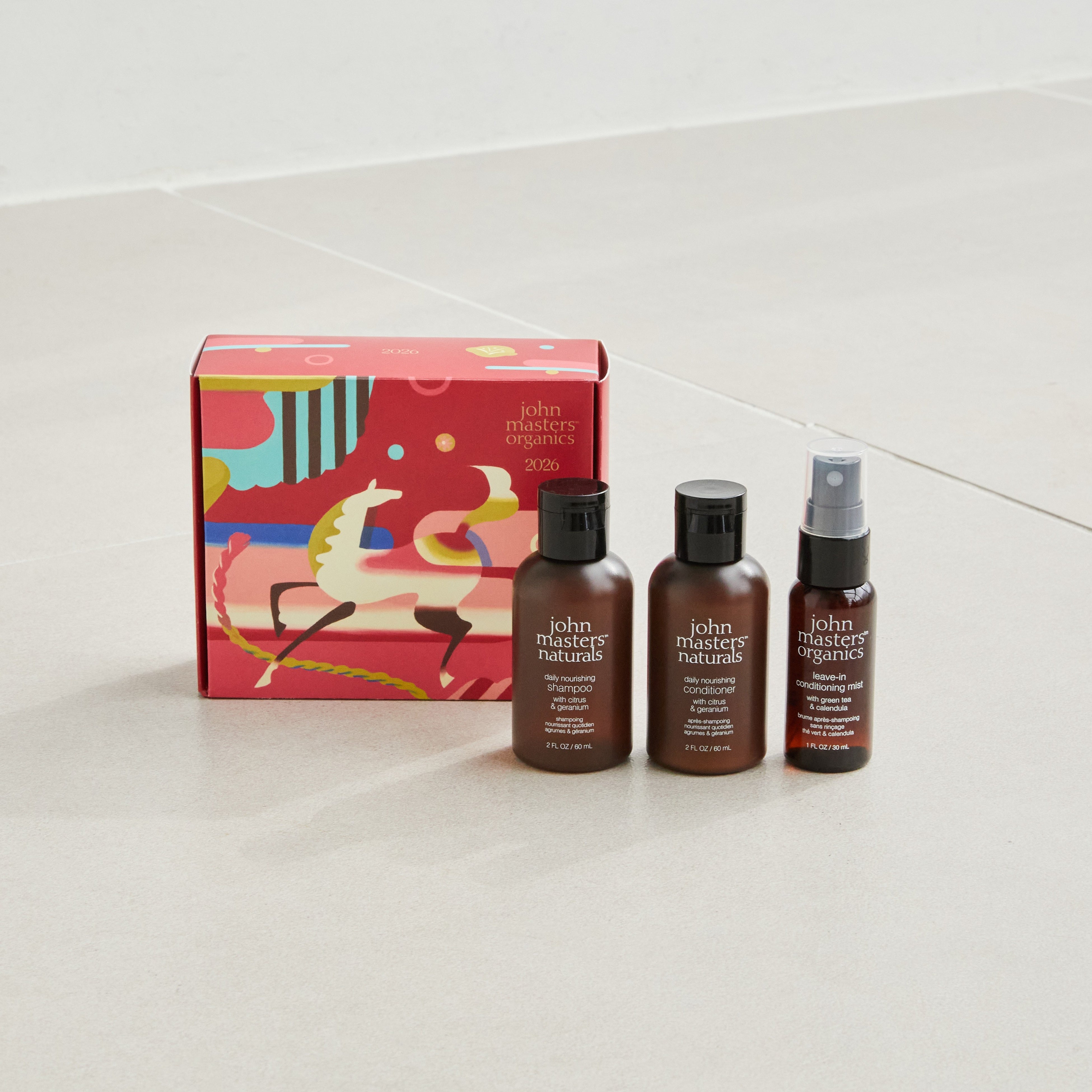 定番のシャンプー&コンディショナーと、ひと吹きで素直な髪へ整えるトリートメントミストのセット。年始の旅行のお供にも最適。