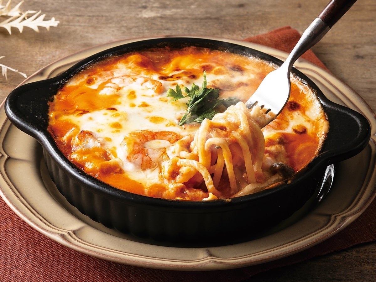 熱々とろ~り!溢れんばかりのコク旨濃厚チーズがたまらない!魚介の旨味の相まって、冬に食べたい至福のオーブン焼きパスタです。
