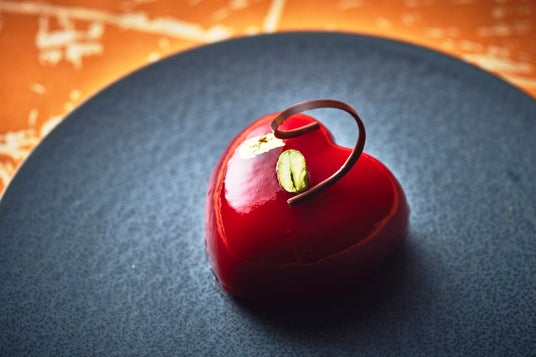 バレンタインディナーにぴったりな、「苺とピスタチオ ハートのムース」でコースを美しく締めくくります。