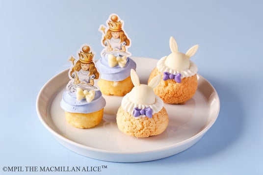 ▲スイーツイメージ(※アリスのドレスカップケーキ・三月ウサギのシュークリーム)