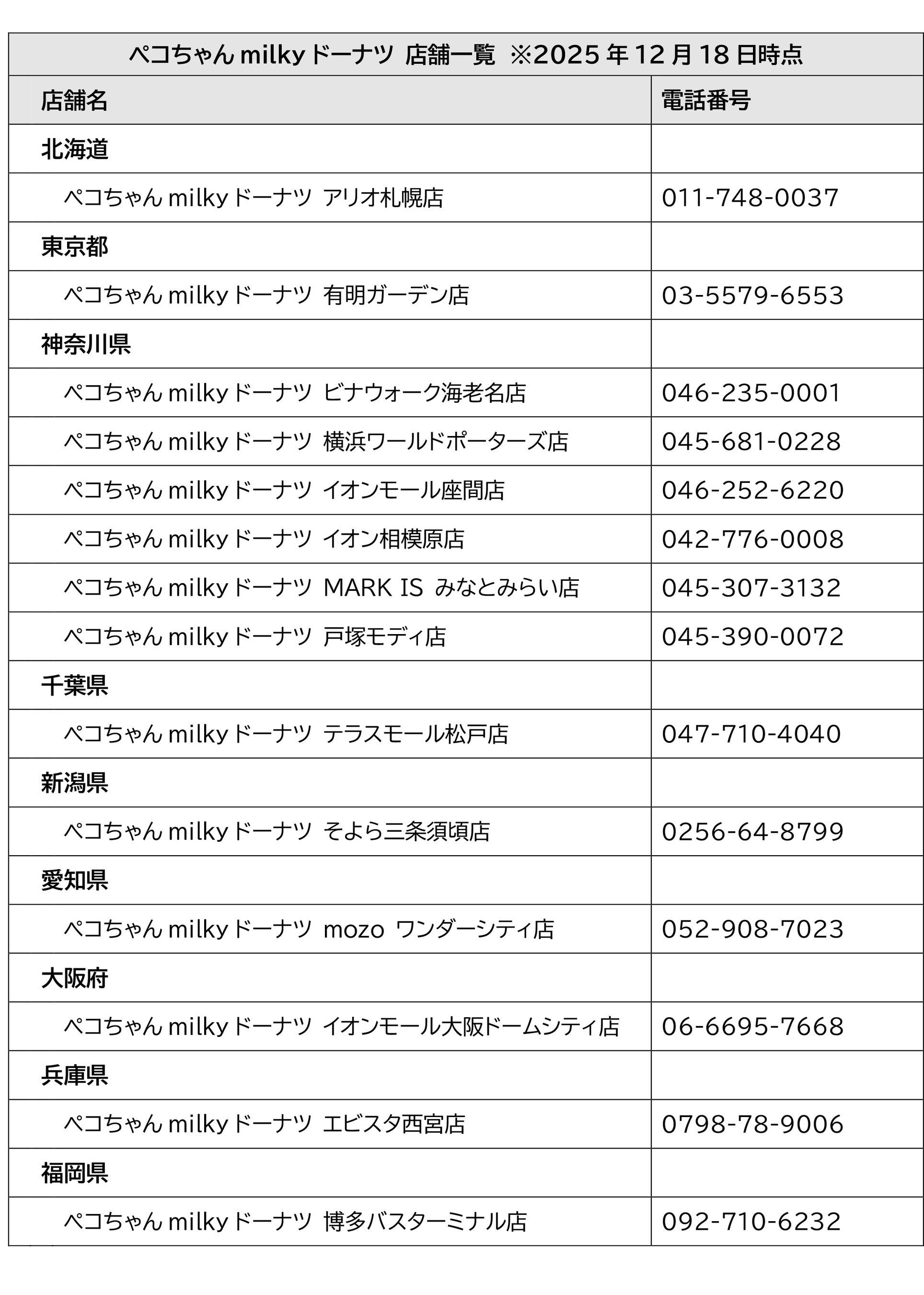 店舗の詳細は「ペコちゃんmilkyドーナツ」特集ページよりご確認ください。