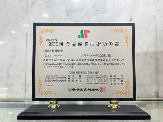 六甲バター株式会社(本社:神戸市、代表取締役社長兼CEO:塚本浩康)は、先日発表された食品産業新聞社主催の第55回食品産業技術功労賞を『「包み」シリーズ』が、「商品・技術部門」にて受賞いたしました。