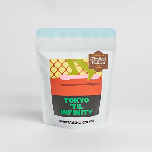 TOKYO ’til Infinity 2025 Winter Limited Editionワールドバリスタチャンピオンシップ2025での猿田彦珈琲バリスタコーチでもあるCole氏が創業しているForward Coffeeから買い付けたパナマをメインにパナマ・コロンビア・エチオピアをブレンドした、爽やかさとキャラメルのような甘さのバランスが心地よい中煎りのブレンドです。ミルクと合わせカフェラテで飲むと滑らかな質感がブルーベリーやティラミスのような風味を感じさせます。