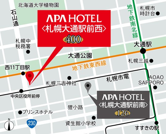 アパホテル〈札幌大通駅前西〉公式HP:https://www.apahotel.com/hotel/hokkaido-tohoku/hokkaido/sapporo-oodooriekimae-nishi/