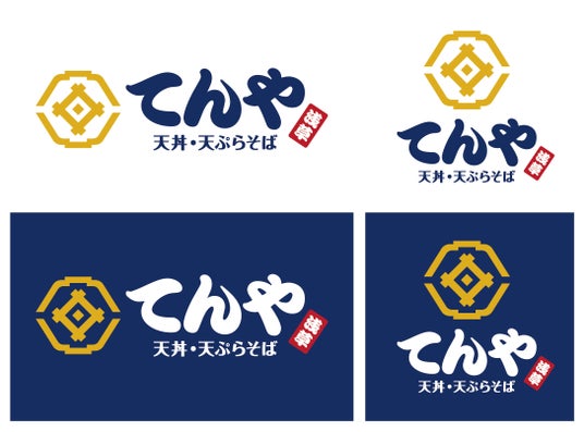 「てんや」がより天丼・天ぷら専門店チェーンとして、地域の皆様の生活に寄り添う身近なブランドに進化していきたいという願いを込め、旧ロゴでは「天丼てんや」と表記されていたものを「てんや」に変更。左にはどんぶりとそばのせいろを模したデザインを施し、メインのロゴにはてんやの新たな価値訴求のために天丼に加え、天ぷらそばの文字を追加しました。一方で、創業当時から守り受け継いできた「天丼てんや」の大切な価値観をこれからも引き継いでいく想いを込め、旧ロゴでも使用をしていた、藍色・きび色・朱色を継続して使用。