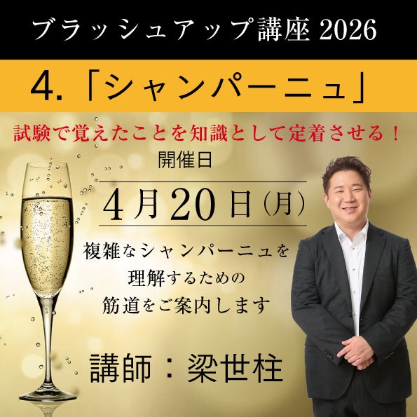 「ソムリエ・ワインエキスパート」に合格した皆様に向けた「ブラッシュアップ講座2026」開講のご案内です。