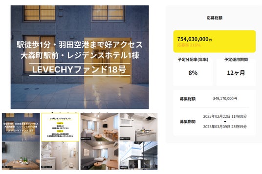 「LEVECHYファンド18号」は、12ヶ月の運用期間を想定しておりましたが、早期の売却が実現し、実際の運用期間は256日となりました。