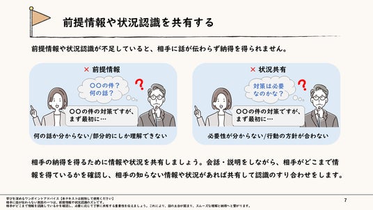 文字の羅列による「読ませるスライド」ではなく、図解やイラスト、フレームワークを多用した「見せるスライド」を採用。受講者の理解を促進し、オンライン研修でも飽きさせない工夫を凝らしています。