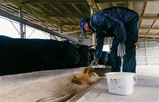 福島県、福島大学、全農福島が連携し、農産の風評被害の払拭と県産和牛価格の回復、酒粕の有効活用という課題に向き合いながら、約4年の歳月をかけて開発しました。出荷前の90日間、1頭につき1日約100gの県内産酒粕パウダーを飼料に加えて与えることで、肉質はよりやわらかくなり、華やかで甘い香りが広がります。その香りの源であるラクトン類を多く含むことが、「福粕花」の大きな特徴。