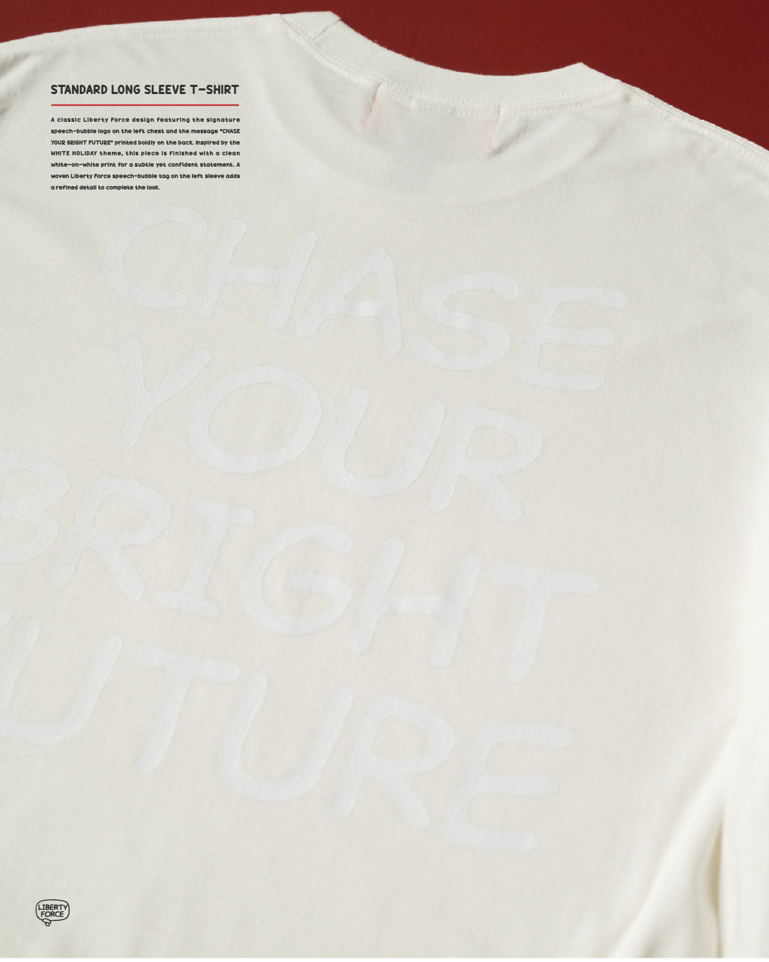 「LIBERTY FORCE」のアパレル商品が約20種類陳列されます。また、今回のコラボレーションに合わせて、白ボディ×白プリントの新作ロングTシャツを発売します。コラボ商品をご購入いただいた方には、「LIBERTY FORCE」のステッカーをプレゼントします。