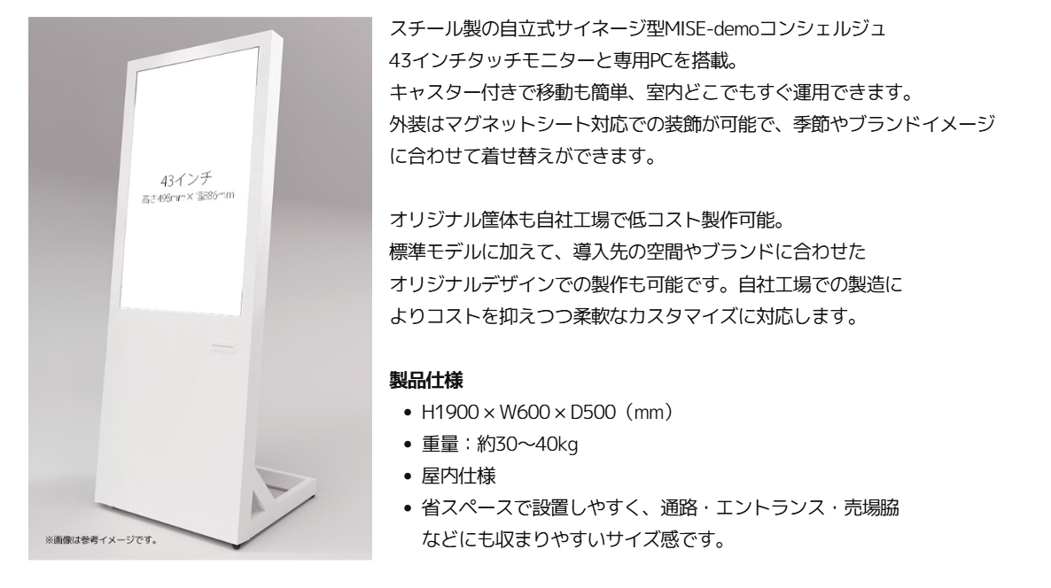 43インチのタッチモニターを採用した、設置しやすいシンプルデザイン