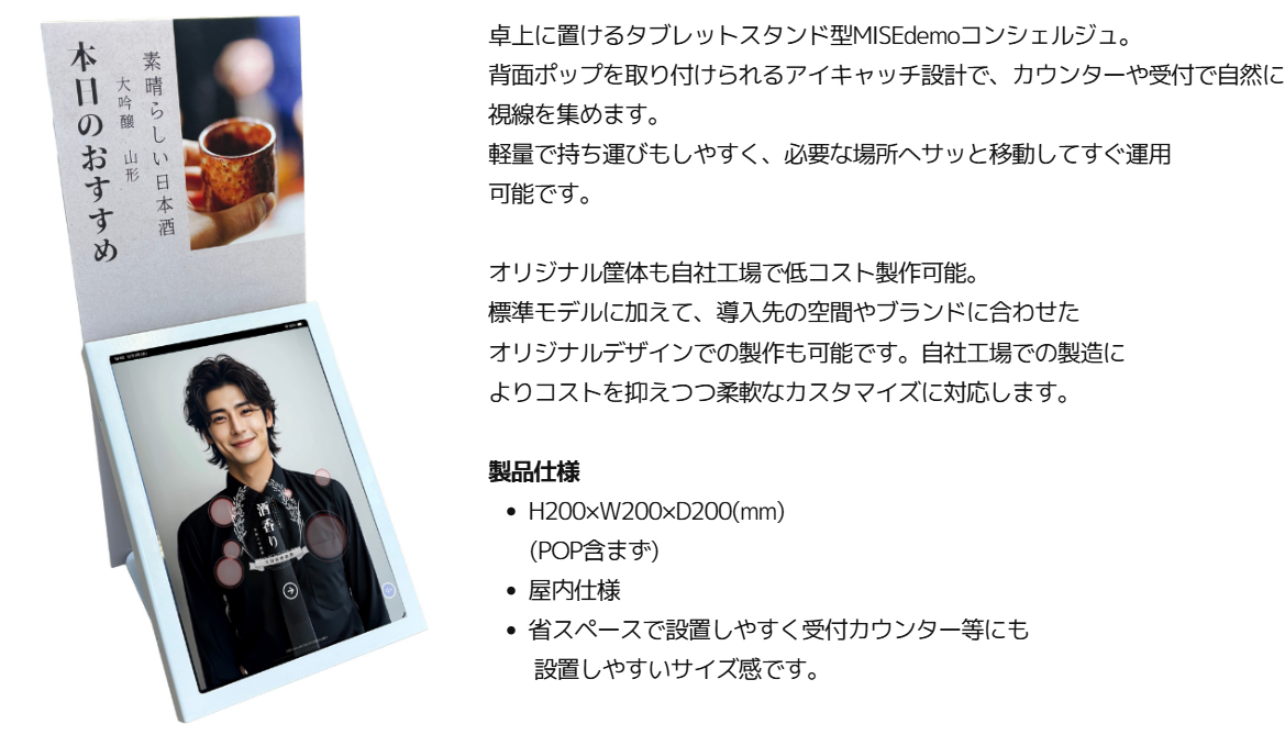 次世代の商環境づくりを手がける事業「MiraiLab」を展開する株式会社タッグ(所在地:東京都千代田区、代表取締役:湯本健司)は、おもてなしの接客が求められる宿泊施設業界向けに、バーチャル接客ソリューション「MISE-demo コンシェルジュ」の提供を開始いたします。