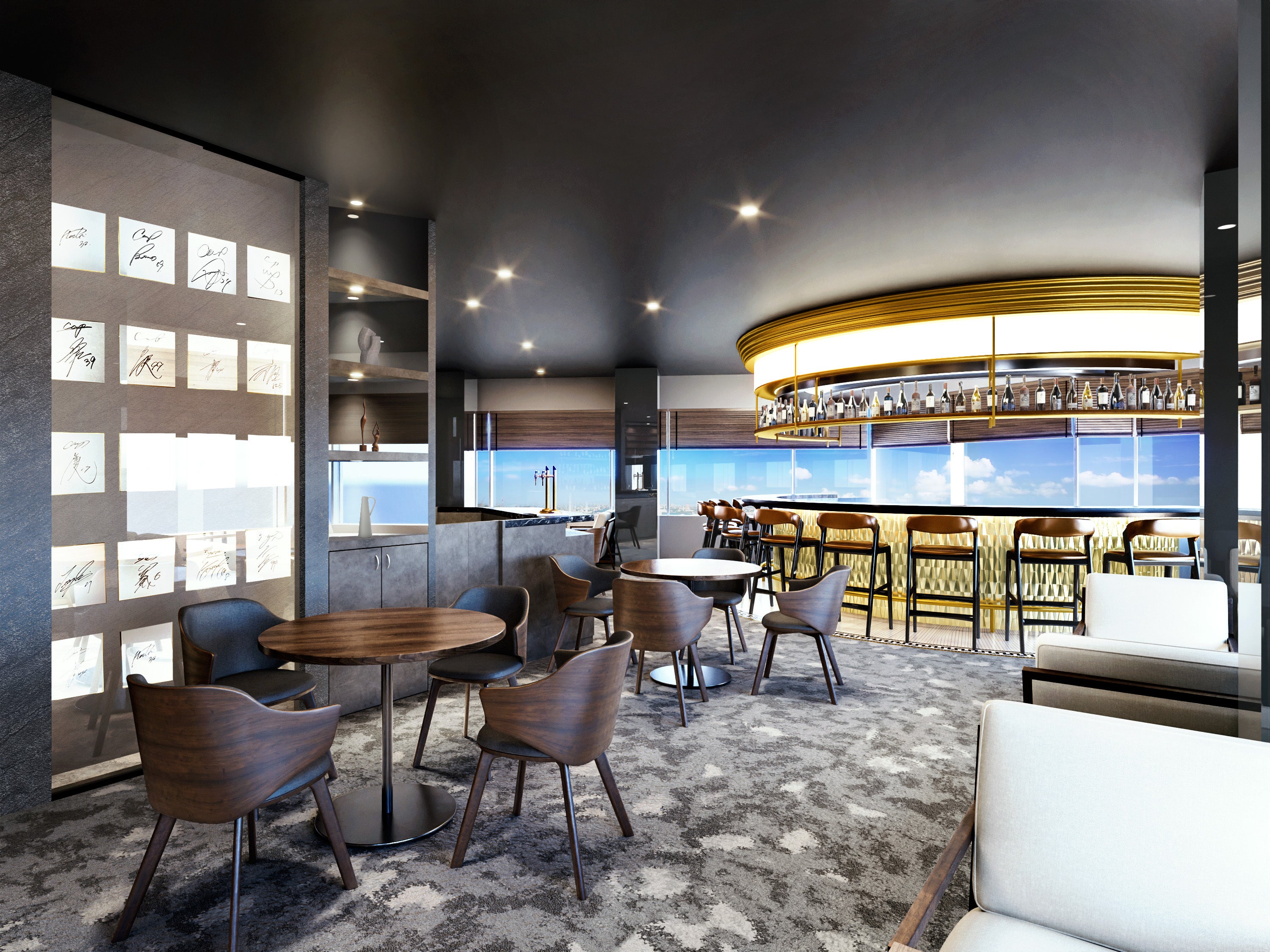 ・オーシャンビューラウンジ:ゆったりとした32席のラウンジを完備。