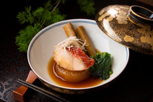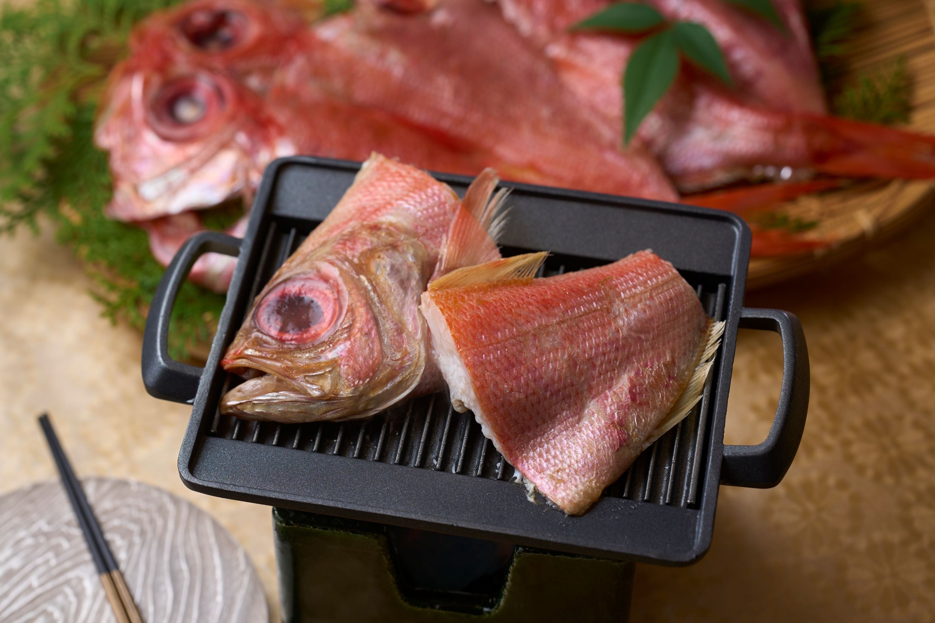 伊豆・伊東を代表するグルメと言えば、新鮮な魚介料理。中でも金目鯛は代表的な地魚です。金目鯛の素材を楽しめる炙り金目鯛のお造り、炙りと生を食べ比べができる寿司、金目鯛をふっくら炊き上げた炊き込みご飯、金目鯛を代表する食べ方の煮付け、金目鯛のつみれと季節の野菜で煮込んだスープなどの金目鯛づくしを提供いたします。さらに風味豊かなあわびと海鮮を浜蒸しでお召し上がりいただけます。そのほか、天然中トロの握りや市場直送のカンパチや富士山サーモン、うなぎ蒲焼などの魚介をお楽しみください。