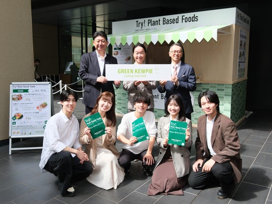 本プロジェクトは、プラントベースフードを展開するブランド「GREEN KEWPIE」のマーケティング施策を、学生主体で企画・実装するものです。地球環境や食の多様性に配慮する「未来の食」として期待されるプラントべースフードですが、生活者への認知・購買にはまだ課題があります。青山学院大学に通う学生への認知度向上を目指し2025年10月に同大学にて行った喫食イベント※2では、10日間で約3,000食を完売しました。プロジェクトに参加した学生の調査※3によると、学生間のブランド認知率はイベント前後で28%から76%へと約2.7倍に伸び、未来を担うZ世代へのブランド浸透として大きな成果を残しました。