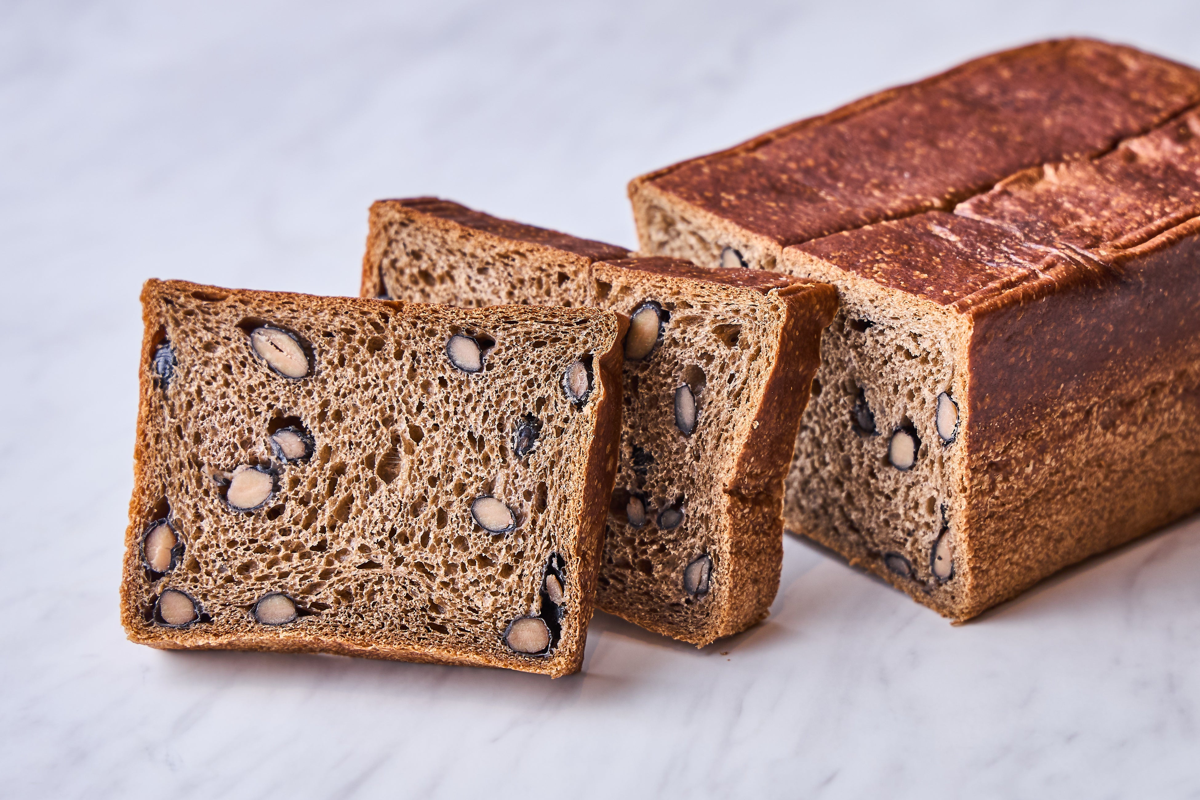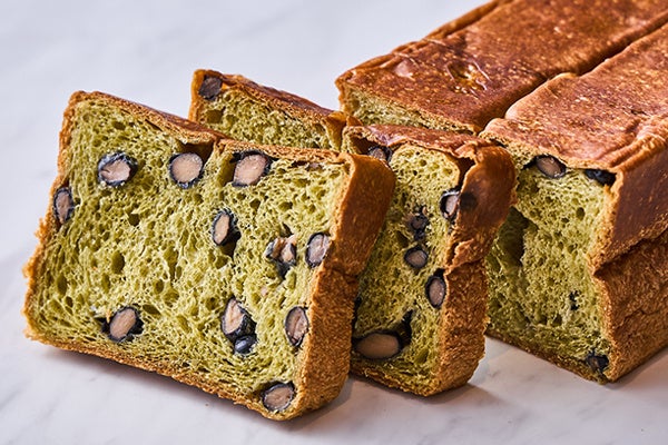 ~抹茶黒豆~抹茶を混ぜこんだ生地に黒豆を入れ焼き上げました。抹茶のほろ苦く爽やかな風味と、黒豆の優しいほのかな甘さがお互いを引き立てます。主食にもおやつにもおすすめです。