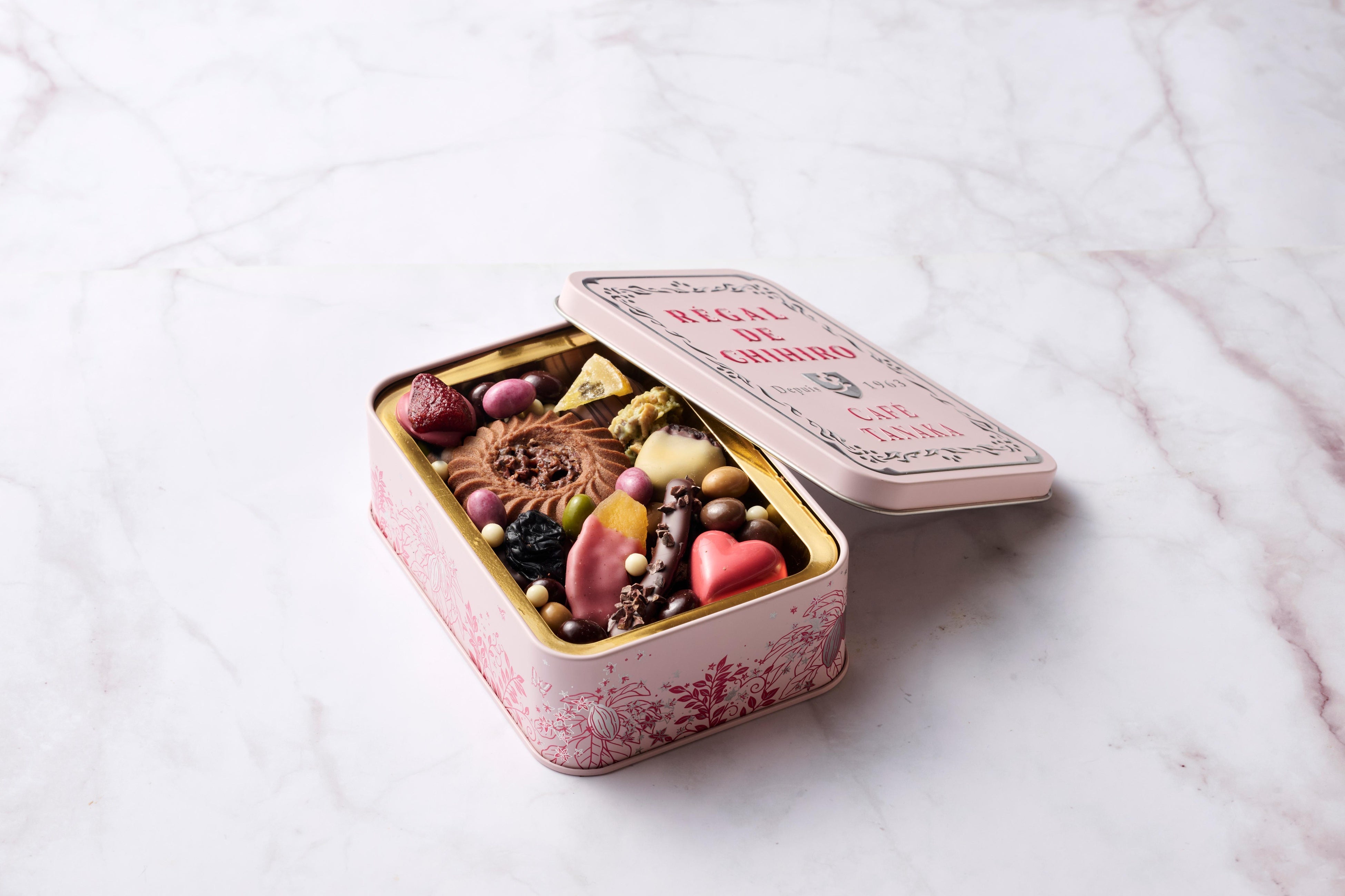 「果樹園」をテーマに、ぶどうやりんご、コーヒー豆など、さまざまな「果実」をショコラと融合させた、見た目も華やかな毎年人気の限定ショコラ缶です。