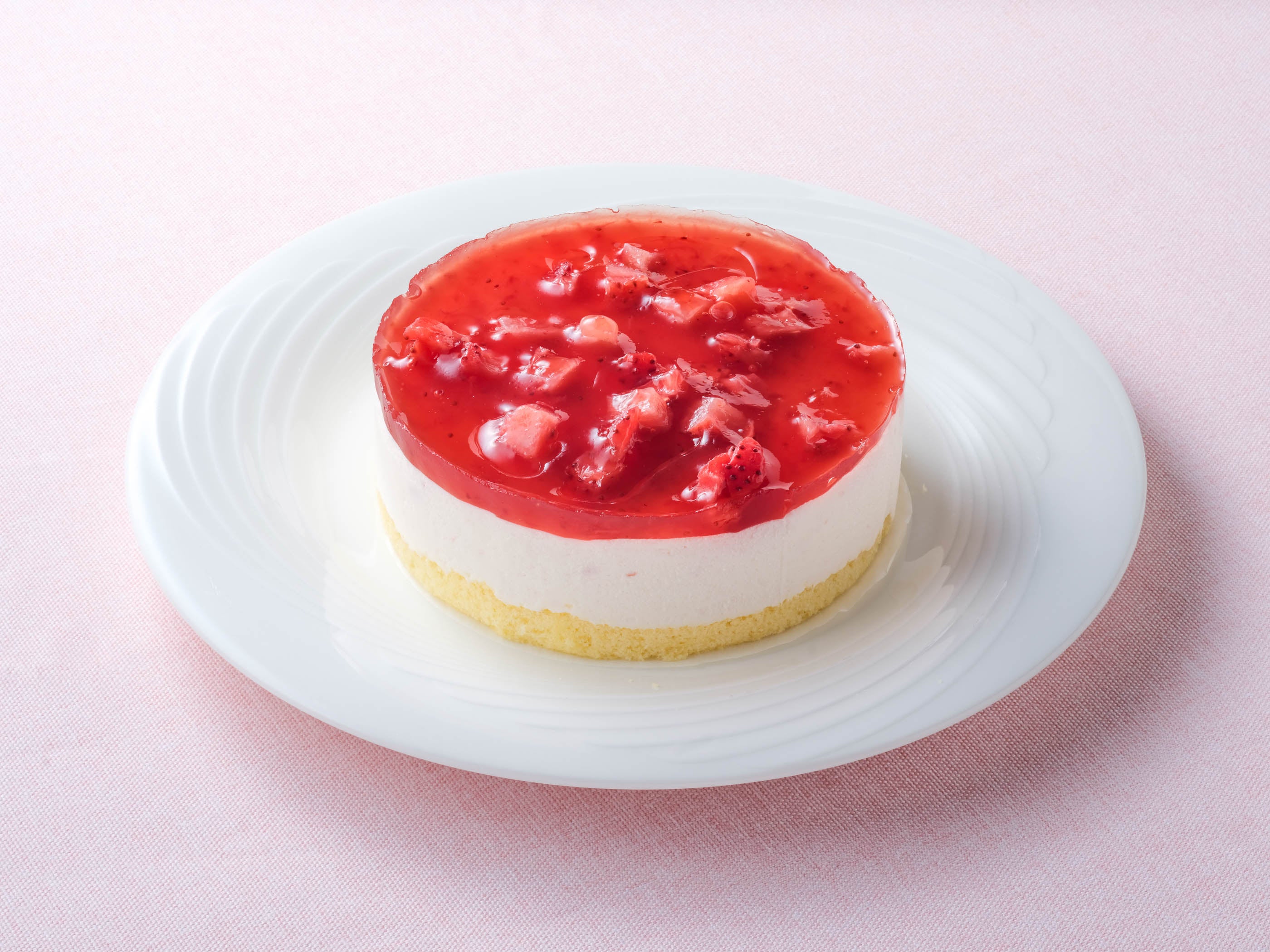 大野のヨーグルトのおだやかな酸味とコクを生かし、濃厚ながらも軽やか、なめらかな口あたりに仕上げたチーズケーキです。いちごの甘酸っぱさとヨーグルトのやさしい風味が口の中でとろけます。