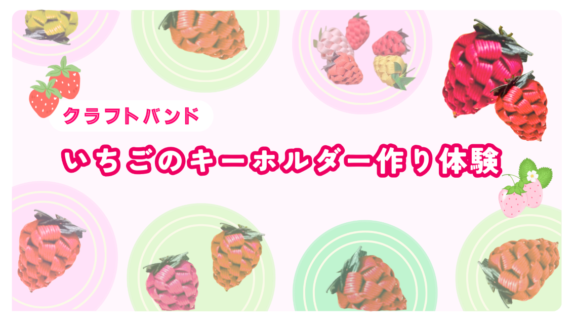 クラフトバンド 「いちごのキーホルダー」作り体験小さなお子さまでも安心してチャレンジできる簡単ワークショップです。期間中はスタッフも同じいちごのキーホルダーを身に着けています。思い出づくりに、ぜひご参加ください♪