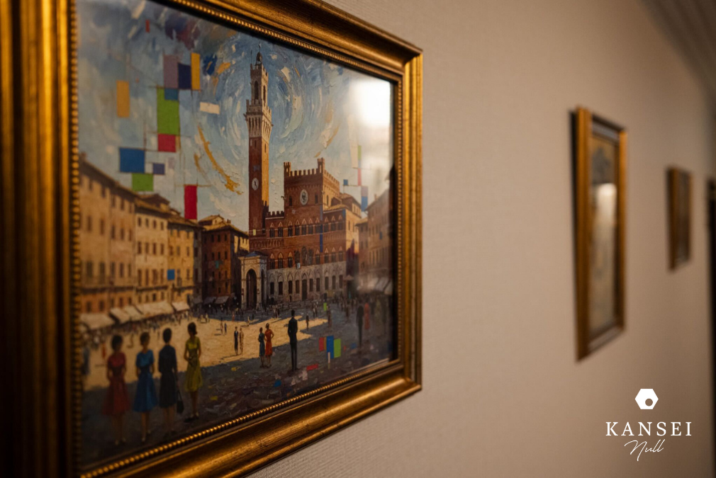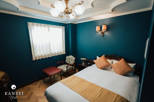KANSEI null 佐賀がめざしたのは、視覚を“癒しの入口”として再認識することです。ただ美しい景色を見せるのではなく、自分の目で世界をゆっくり受け取る時間を提供したいと考えました。大切に使われてきたアンティーク家具や絵画、レンガ造りの外観に、1960年代ヨーロッパのホテル文化を重ね合わせ、 各客室の壁紙・色彩・照明・細部を世界の都市の記憶とリンクさせています。廊下や階段は“ギャラリーのような静けさ”をイメージし、光の陰影や額縁の配置が、ふと立ち止まりたくなる視覚体験を生み出します。