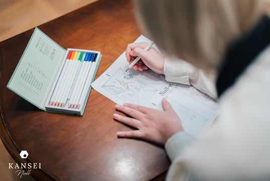 視覚テーマをさらに深める体験として、 全客室にオリジナル心理アートワークとなる塗り絵を設置しています。塗り絵シートと色鉛筆を用い、直感で選んだ色や塗り方から その時の心の状態を“視覚的に”理解できるKANSEI独自のコンテンツです。スマートフォンから少し離れ、色と向き合うことで、 「今なぜこの色に惹かれたのか」に気づく小さな内省の時間が生まれます。