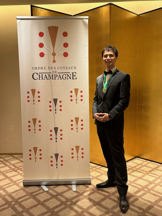 【2025年12月19日(金)】コンラッド大阪(大阪市北区中之島、総支配人 レオ・フランクル)の料飲部アシスタントディレクターのアジュート ミカエル (Adjoute Michael)は、2025年10月17日(金)、フランス シャンパーニュ地方の名門『シャンパーニュ騎士団 (Ordre Des Coteaux De Champagne)』より、「シュヴァリエ」の称号を叙任されました。本叙任は、シャンパーニュの名門メゾン「メゾン・テルモン」の推薦に基づくものです。