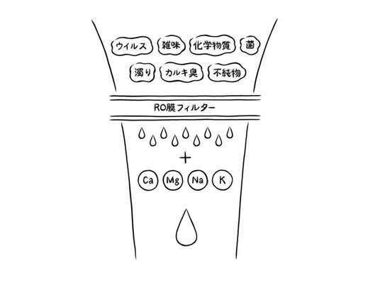 PFASなどの化学物質に対して、最も効果が高い除去技術とされているのが「RO膜(逆浸透膜)」です。RO膜は、極めて細かい孔を通して水分子以外の不純物を分離し、一般的な浄水フィルターでは除去できないナノレベルのウィルスや放射性物質、PFASを限界値まで取り除くことができます。クリクラの水は、厳しい水質基準をクリアした日本の水道水を原水に採用し、RO(逆浸透膜)フィルターにより不純物やPFASなどの化学物質を取り除き、水の純度を高めたRO水です。