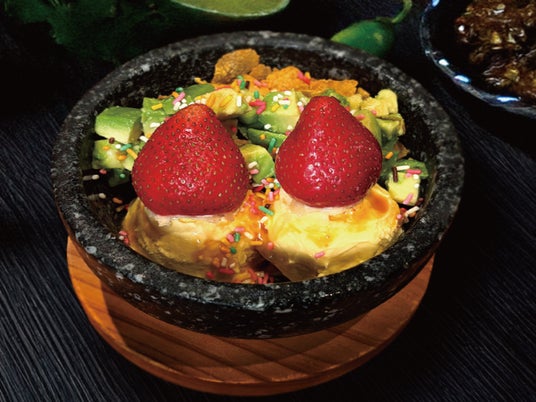 これに加え、揚げたてのフライドポテトにスパイシーなチリビーンズとたっぷりのチーズをかけた食べ応えのある「チリチーズポテト」をご用意。デザートには、冷たい石の器にバニラアイスクリームをベースにイチゴとアボカドをトッピング、これら異色の組み合わせを練りこんで食べる「アボカドのストーンアイス」を提供します。
