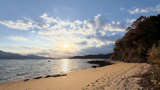 夕焼け色に染まっていく水平線を眺めながら、ビーチで焚き火を楽しむことが可能。